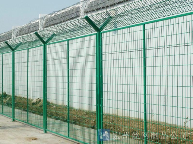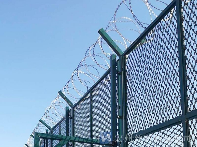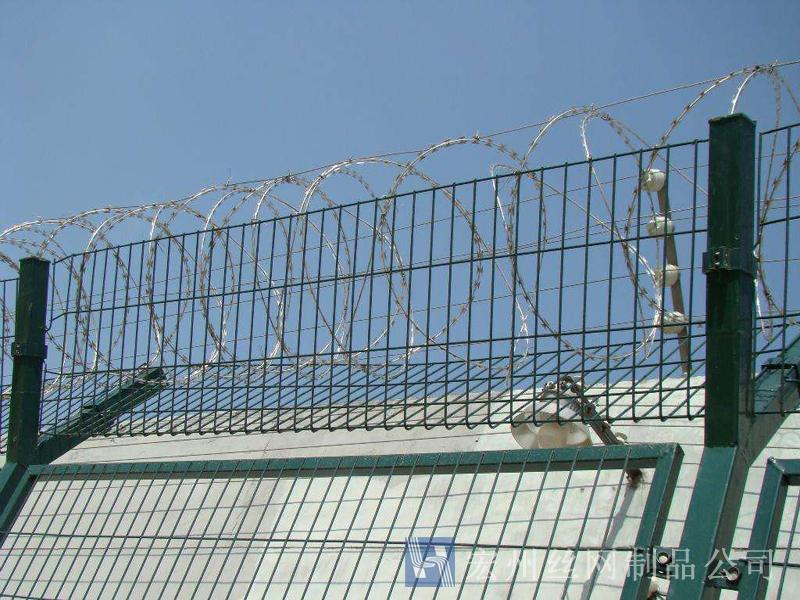監獄防護網又稱監獄隔離網或監獄隔離柵,山東監獄隔離網產品由護欄網直接生產廠家--宏州護欄網廠生產提供,產品主要是采用高強度的刀片刺網與普通防護網的結合,由V型支架立拄,加強型焊接片網,安全防盜連接件和刀片刺網組成.刀片刺網是一種新型防護網,由銳利尖角鍍鋅鋼板或不銹鋼薄板做刀片,鋼絲做芯線組合而成的防護器材.監獄刺網護欄可平地安裝,也可在圍墻上二次安裝,有效防止攀逃。