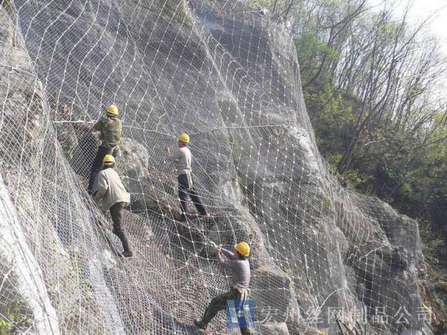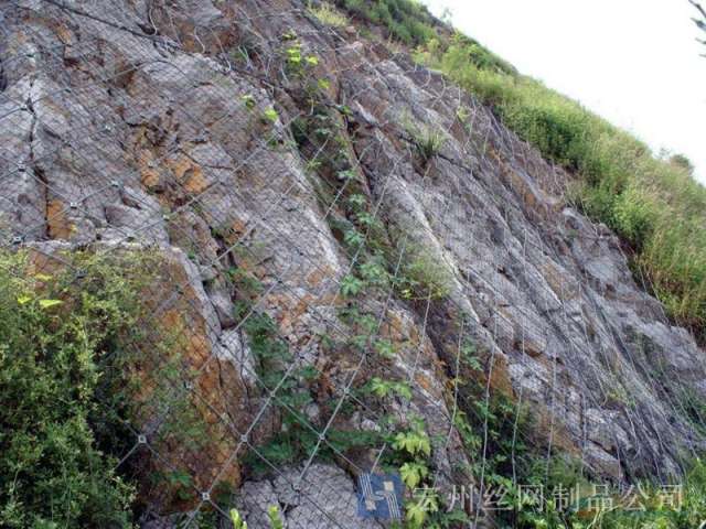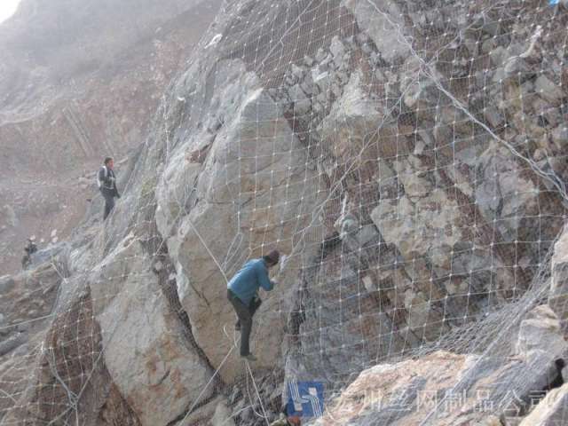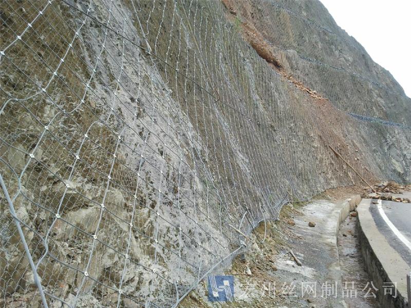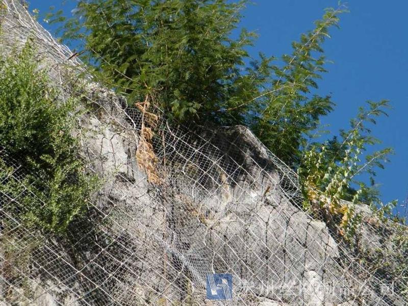 主動防護系統是以鋼絲繩網為主的各類柔性網覆蓋包裹在所需防護斜坡或巖石上,以限制坡面巖石土體的風化剝落或破壞以及為巖崩塌(加固作用),或將落石控制于一定范圍內運動(圍護作用)。是柔性防護網的一種。